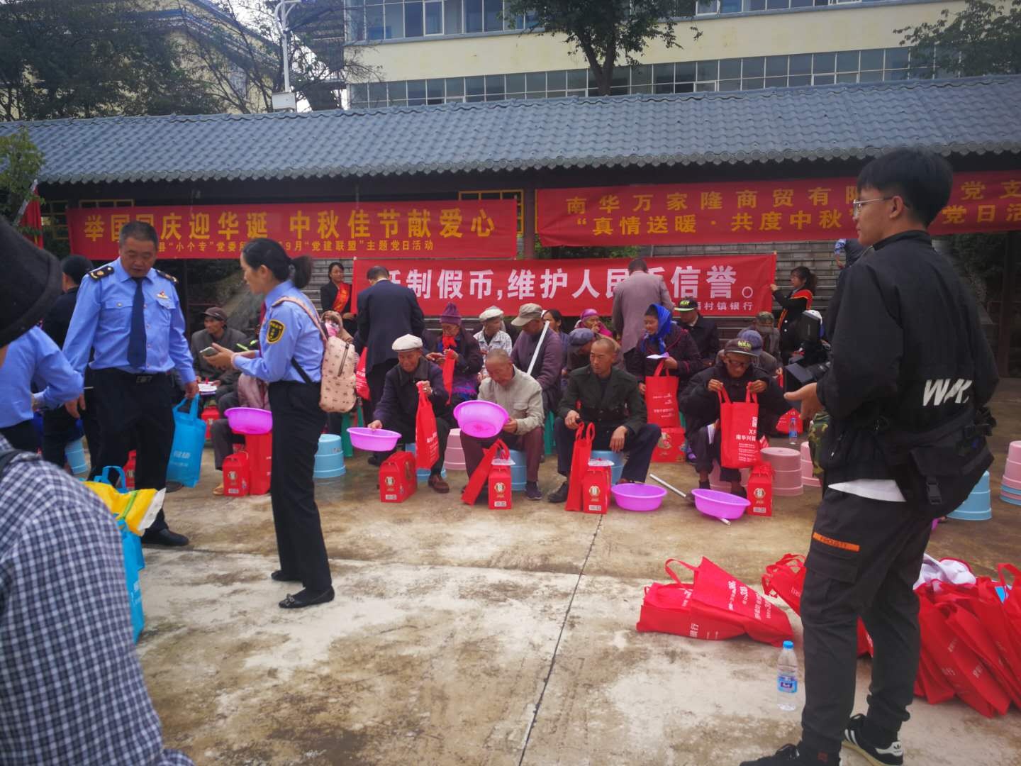 一是开展“牢记历史,热爱祖国”庆祝活动。组织全体参会党员开展云岭先锋APP签到、集中交纳党费、老党员作“牢记历史热爱祖国”专题发言,“小个专”党委对基层党建品牌创建、“四万三进”、支部规范化达标等党建工作进行安排部署。二是到南华县龙川镇敬老院开展“中秋佳节献爱心”活动。南华万家隆商贸有限公司党支部为敬老院老人送去了32盒中秋月饼,价值 3000元;南华兴福村镇银行有限责任公司党支部为敬老院老人送去了毛巾、洗脸盆等日常生活日用品,南华晶武管理服务公司党支部为敬老院老人送去了纸巾、水杯、口罩、环保袋等日常生活日用品,南华光福商贸有限公司党支部党员王永红现场为老人捐赠现金2000元,为一名困难大学生捐现金1000元。同日参加活动的南华县红十字会志愿者与支部党员共同为敬老院老人理发、陪聊、打扫室内外、院内外等卫生,与老人问寒问暖,送去节日的问候,力求用实际行动为敬老院老人过上一个温馨、幸福的中秋佳节奉献爱心。
