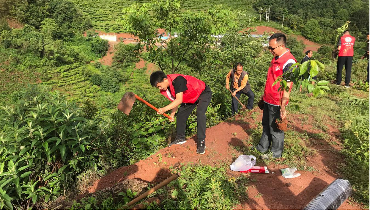 7月22日上午,兔街镇青年人才党支部党员在支部书记的带领下深入半坡村委会,与半坡村干部、群众共计45人一同开展绿化、美化植树活动。