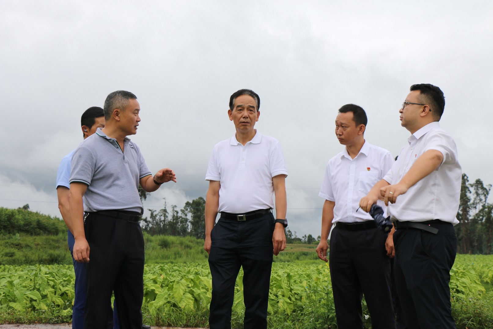 8月16日,云南中烟党组成员、副总经理武怡,云南中烟技术中心党委委员、副主任陈剑一行在楚雄州烟草专卖局(公司)党组书记、局长、总经理曹敬东,楚雄卷烟厂厂长范斌等陪同下,到沙桥镇调研当前烤烟生产工作。