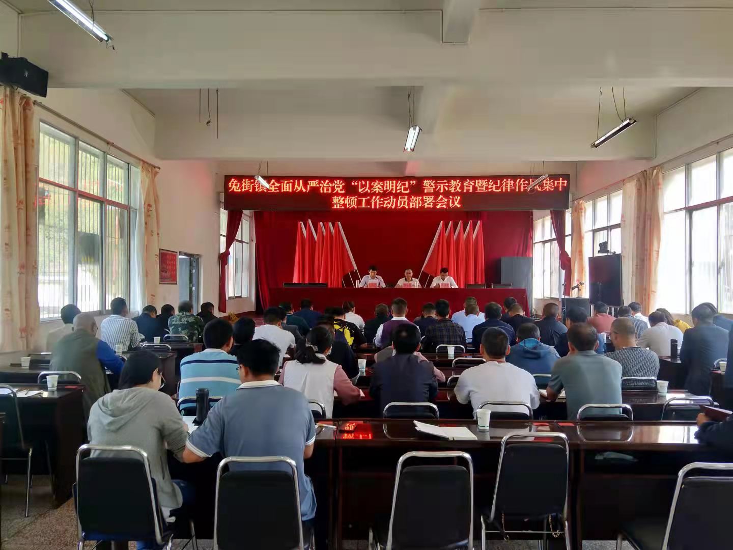 为用身边的人、身边的事警示全镇党员、干部汲取深刻教训,进一步解决党员干部和作风建设中存在的突出问题,动员广大党员干部解放思想、转变作风,以廉洁的党风、高效的政风、务实的作风推动全镇经济社会持续发展。9月30日,兔街镇召开全面从严治党“以案明纪”警示教育暨纪律作风集中整顿动员部署会议,镇党政领导班子成员、镇属全体干部职工、上管单位负责人,各村党总支书记、村务监督委员会主任和驻村第一书记等70余人参加会议。