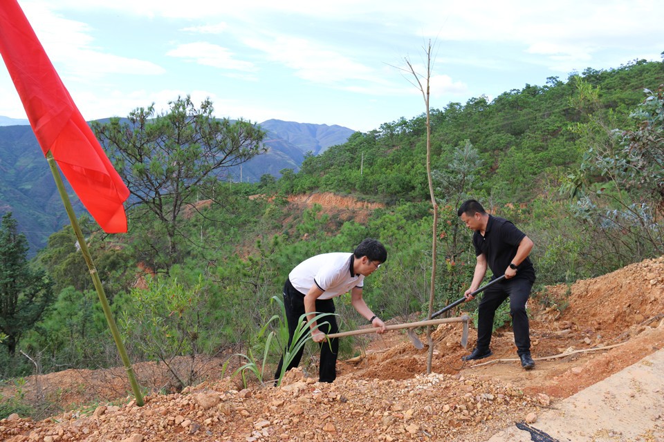 罗武庄乡树密鲊村委会幸福新村活动现场,干部职工干劲十足,扛着锄头、提着水桶,分工合作,有人发树,有人扶苗,有人培土,有人浇水,在幸福新村至水厂路段种植30余棵凤凰树,为树密鲊幸福新村再添新绿。