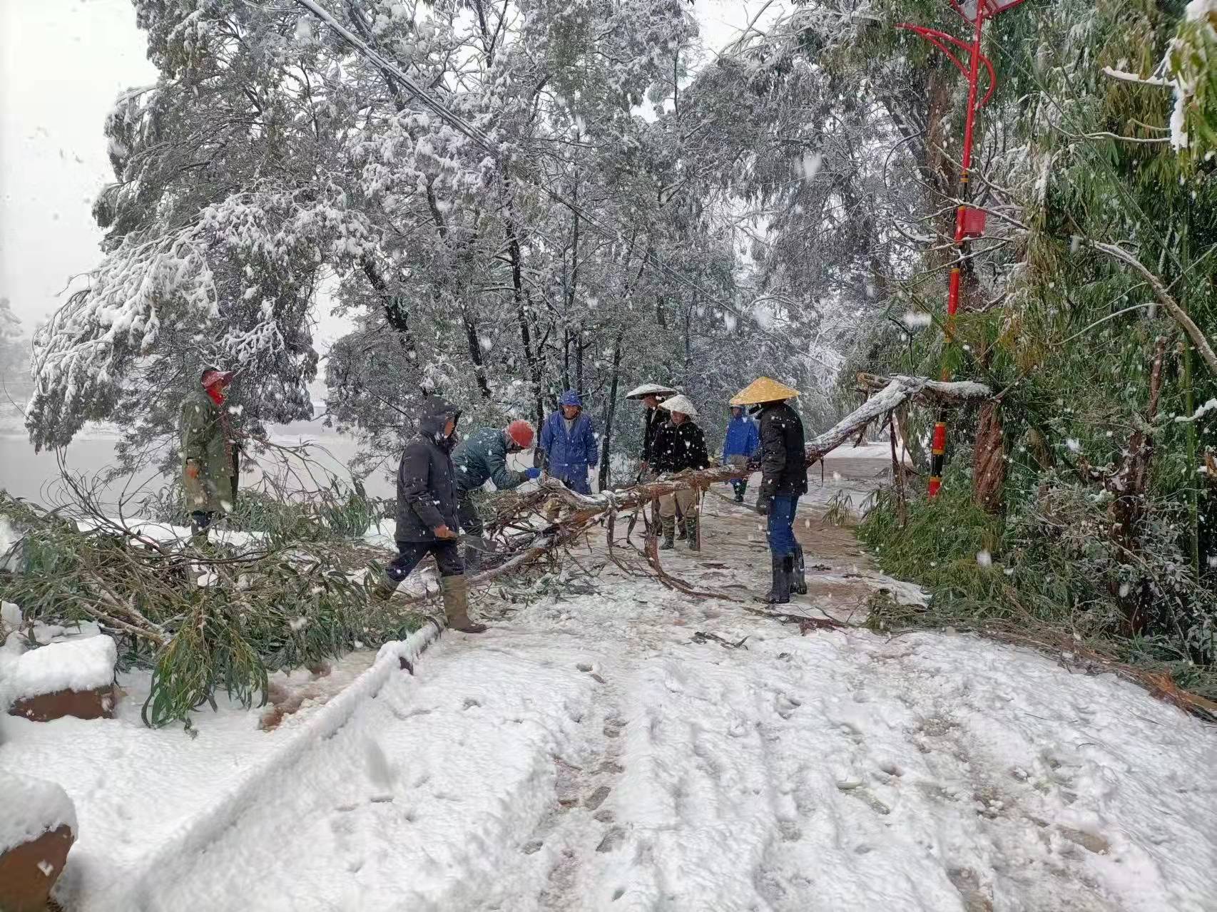 为切实保障人民群众生命财产安全,龙川镇立即启动应急预案,全方位部署防雪抗灾工作。一是早安排,明确落实工作责任。主要领导扛起防雪抗灾第一责任人的责任,带领班子成员深入一线及时查找和解决问题。要求全镇及各村(社区)严格落实24小时值班制度,加强协作配合,严明工作纪律,对雪情灾情和突发事件信息第一时间报告。对瞒报、迟报、漏报造成重大影响的严肃追究。二是全覆盖,扎实补齐短板弱项。重点关注五保户、残疾人、留守儿童和老人等困难弱势群体防寒防冻情况,并对全镇辖区内所有农户危房、种养殖大棚、水库坝、地质灾害隐患点、废旧厂房、彩钢瓦房,特别是经营性场所,开展拉网式排查关停,杜绝出现人员伤亡。三是暖人心,充分发挥党组织战斗堡垒作用。全力帮扶困难群众解决实际问题,科学指导农户积极开展生产自救防治,减轻灾害损失,动员党员、镇村干部、志愿者、小组长和民兵在龙泉东路、城区至徐营、南大线、南永公路等辖区主要交通干道上开展“扫雪除冰”、“清障救援”志愿服务活动,保障群众出行安全。四是抓宣传,联防联控保平安。通过抖音、微信群、大喇叭等方式全面宣传冰雪灾害天气应对知识,及时发布道路、供水、供电信息,加强用电、用气以及煤、碳取暖安全教育,引导群众科学防范有效应对,妥善做好生产生活、出行安排,严防民房火灾和一氧化碳中毒。
