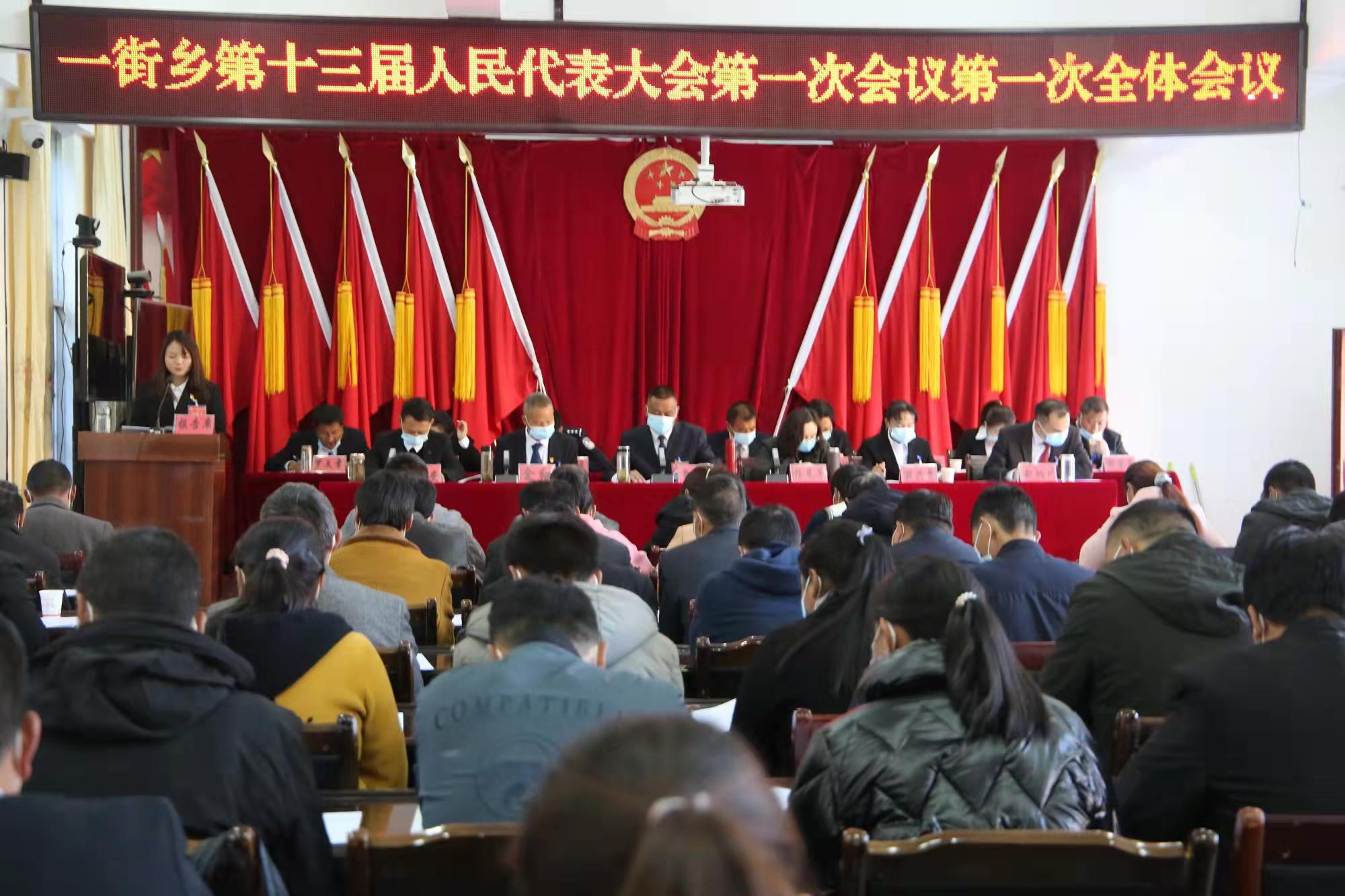 1月5日上午,一街乡第十三届人民代表大会第一次会议隆重开幕。会议应到代表59人,实到代表57人,因事因病请假2人,符合法定人数。