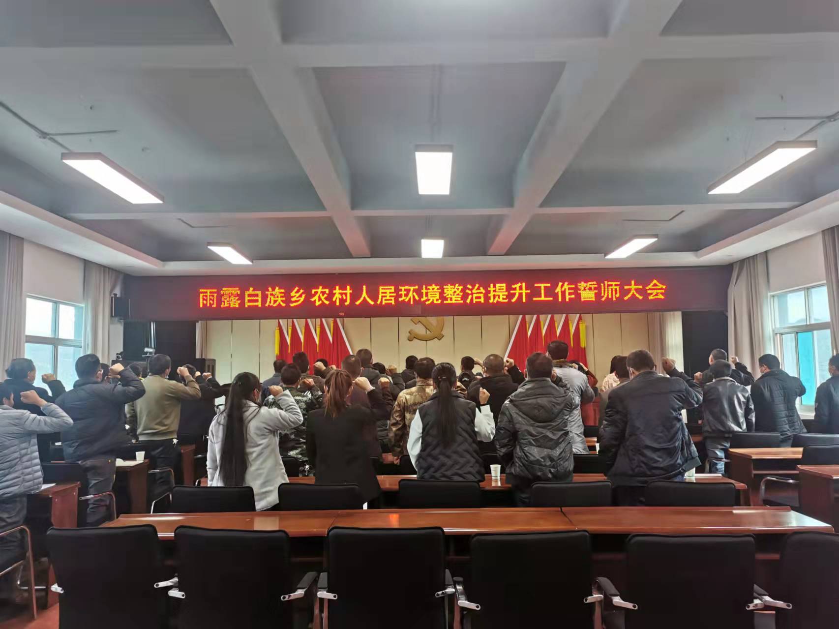 会议最后,参会人员齐声宣誓。随着铿锵誓言响起,雨露白族乡全域开展农村人居环境整治提升行动正式拉开帷幕。