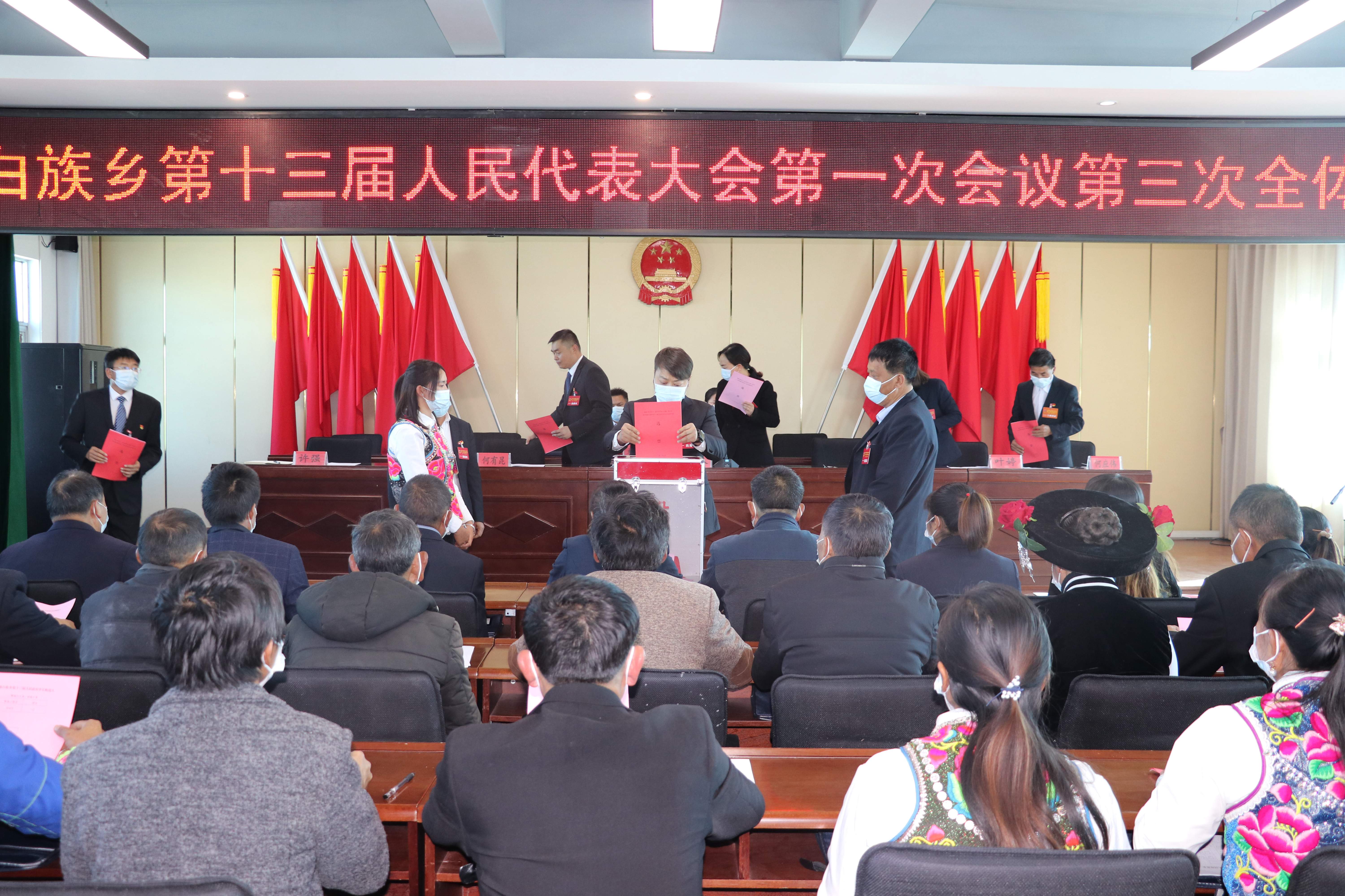 雨露白族乡第十三届人民代表大会第一次会议在庄严的国歌声中胜利闭幕!