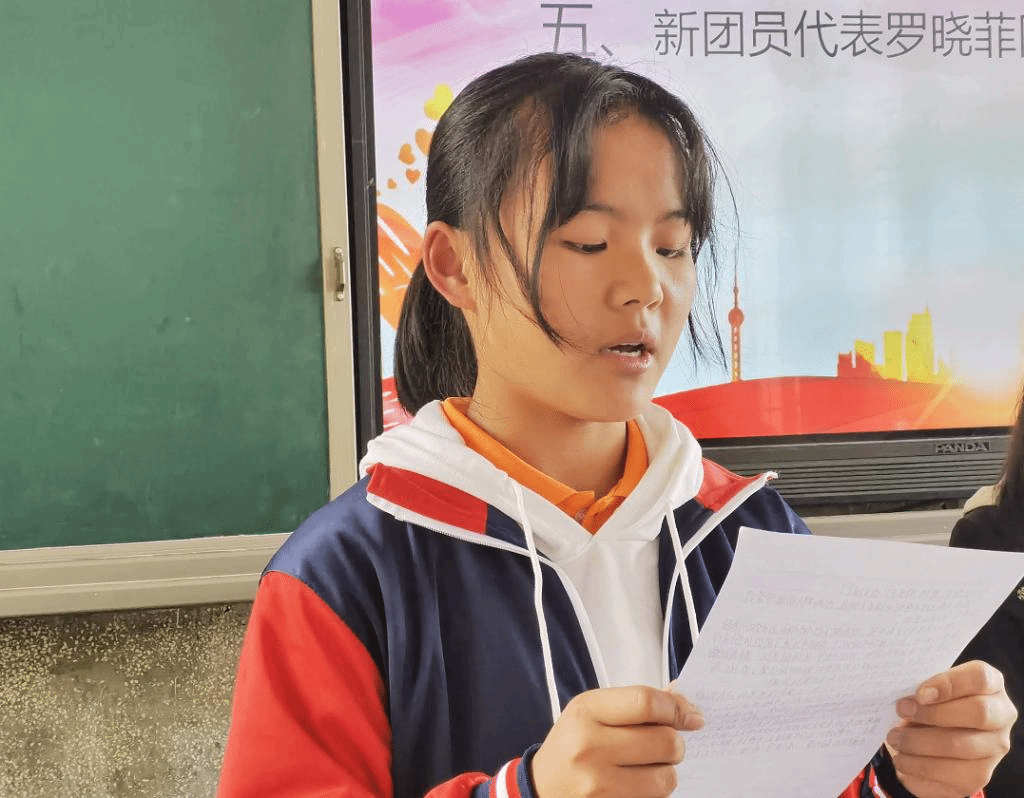 举行入团仪式,感悟初心使命。罗武庄初级中学2022年新团员入团仪式在雄壮的国歌声中拉开序幕,团员们面对团旗庄严宣誓,罗晓菲同学代表新团员发言,讲述了她对共青团的认识及入团感受,并号召同学们弘扬五四精神,发挥团员先锋模范作用。罗武庄乡党委副书记李建荣同志出席会议并寄语青少年:“青年时代要树立正确的理想、坚定的信念,要坚持学习,积极掌握科学知识、提升内在素质、锤炼过硬本领,努力成为党、国家、人民所需要的有志青年。”