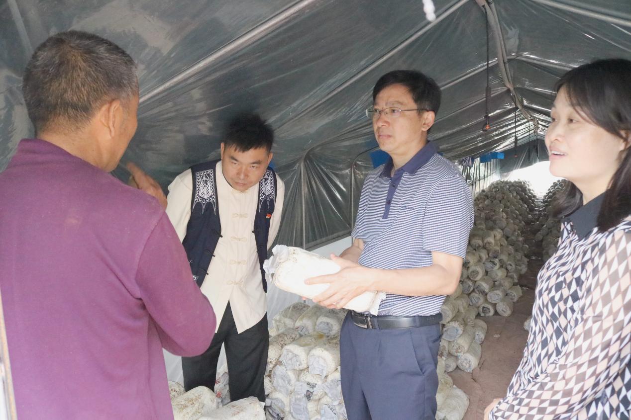 陈如军一行还调研了人工食用菌种植产业发展情况,在实地察看了种植户张汝辉的种植大棚后,他对雨露乡人工食用菌种植培育发展给予充分肯定,他要求乡人民政府要充分发挥致富带头人示范带头作用,加强资金等要素支持力度,鼓励、支持致富带头人发展产业,在农业产业化、现代化上再细化再落实,做大做强雨露菌产业。