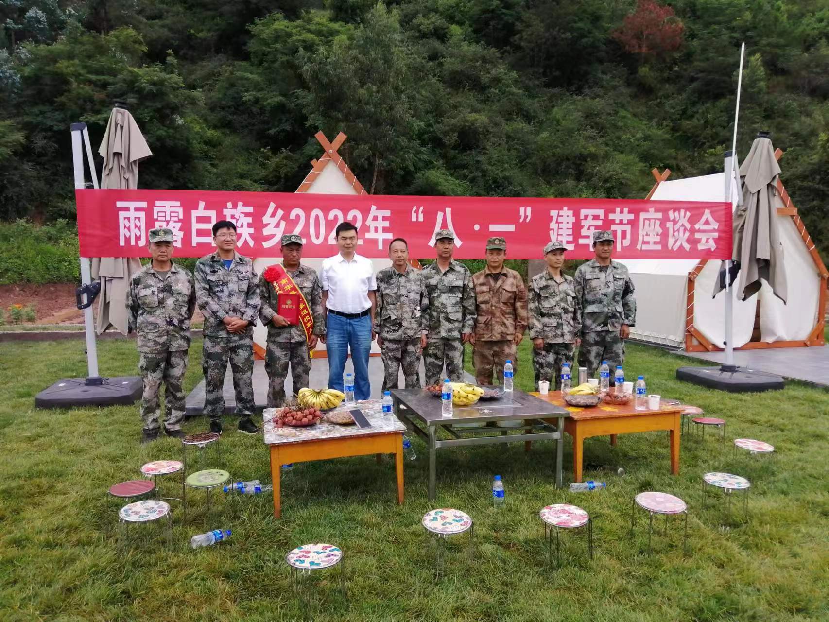 在“八一”建军节来临之际,为热烈庆祝中国人民解放军建军95周年,也为了更好地继承和发扬“军爱民、民拥军”的优良传统,营造拥军优属良好氛围,8月1日,雨露白族乡组织机关优抚对象、村两委退役军人干部及负责退役军人事务的工作人员开展2022年“八一”系列活动。乡领导班子参加活动,并向退役军人致以节日的祝贺和诚挚的问候。