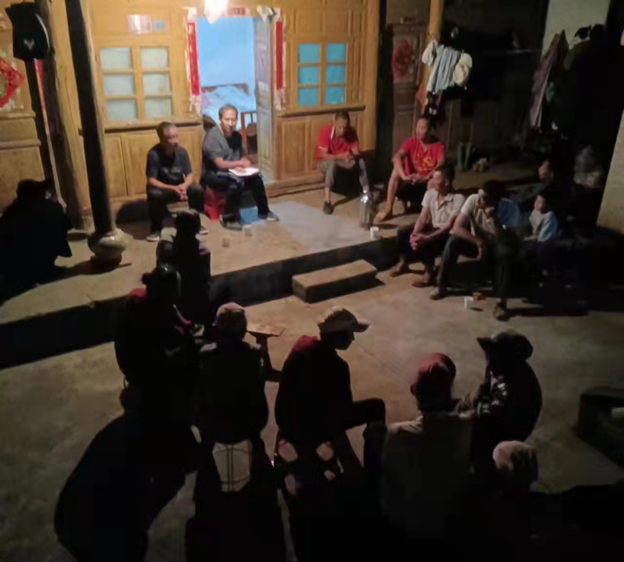 8月18日晚五顶山乡力苴村大龄岗小组张学华家中,乡村两级干部与村民们围坐在一起,一幅“党群同心,共谋振兴”的画面铺展开来。根植群众,问需于民,“我们家的烤烟因冰雹受灾,烟叶站及时组织人员进行农险查勘,申请保险赔偿,包村工作组还帮助我补种萝卜,我的心里暖暖的。”村民者联春感激地说。