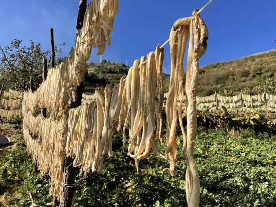 村民从地里很轻松的拔出萝卜,摘去多余的叶片,用清水进行冲洗,清洗完的萝卜整齐摆放在箩筐里,然后熟练地在切割机上一根根进行切割,整套动作干净利落,不一会,一根根萝卜条整齐地晾晒在田间的萝卜架上。