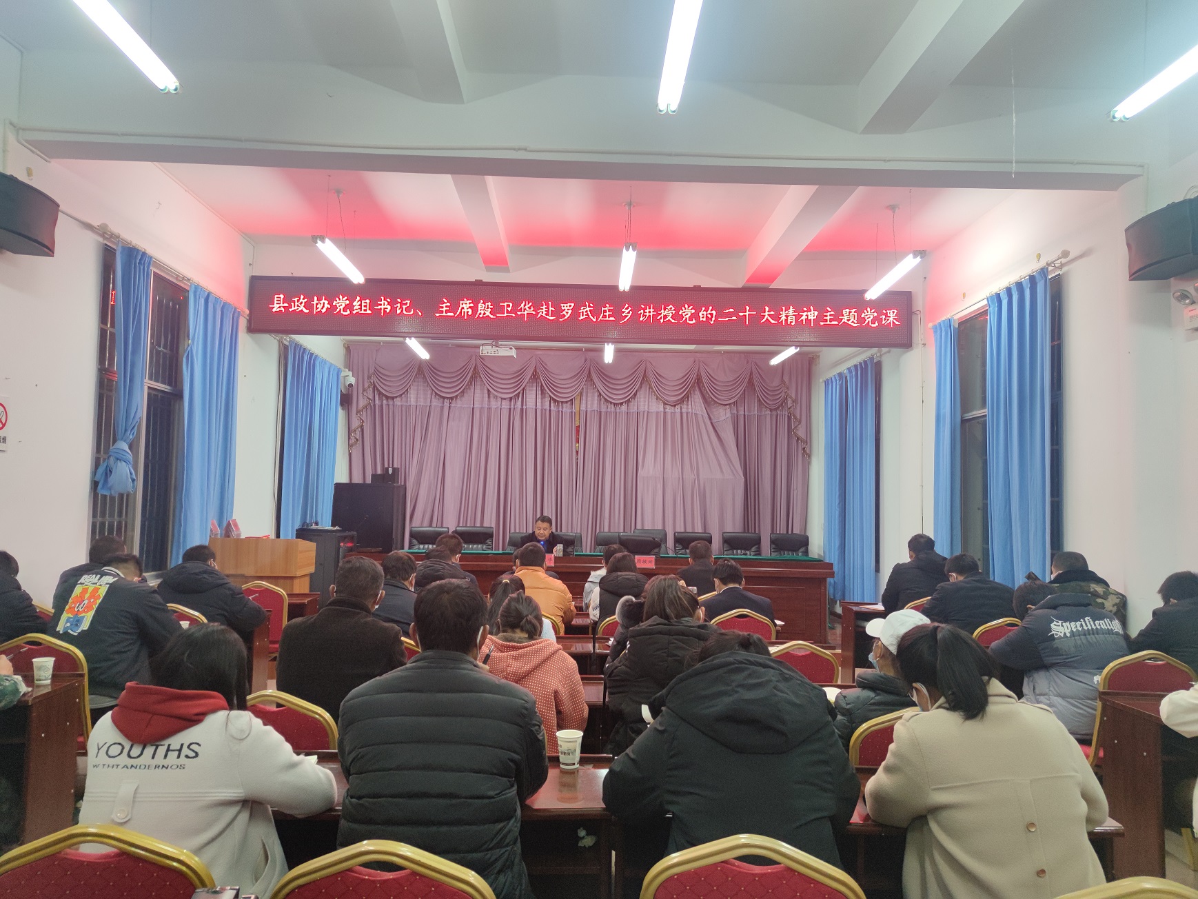 1月5日,县政协党组书记、主席殷卫华到罗武庄乡讲授党的二十大精神主题党课。党政班子成员、乡属全体干部职工和部分村四职成员、驻村工作队员共计60余人参会。