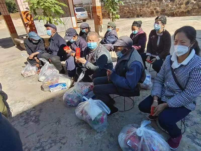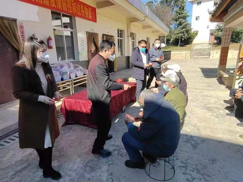 下午三点左右,敬老院的老人们在阳光的照耀下齐聚一堂,高建华一行把带来的面包、牛奶等慰问品、100元慰问金、防疫药品一一送到老人们的手中,对老人嘘寒问暖,关心他们的身体健康,并向老人们致以新春问候和祝福。收到慰问品和祝福,老人们脸上露出了开心的笑容,此次活动共捐赠了价值6000元的新春抗疫慰问物资。