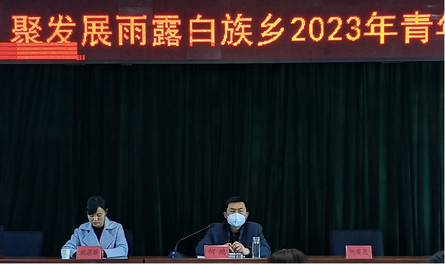 何鸿勉励全体青年干部:一是脑中要有理想。要提高政治站位,把个人理想与雨露乡发展方向相结合,参与家乡建设,为雨露的事业发展出谋划策,贡献青春力量。二是工作要有精神。青年要爱岗敬业、奋发图强,把自身事业融入雨露人民的共同事业之中,积极参与雨露乡“最美乡愁地”建设,助力各项产业发展,参与民俗文化传承和发扬,用青年人的朝气和才华推动雨露“生态立乡、文旅兴乡”目标落实。三是心中要知敬畏。青年团员要服从组织、接受历练,召集和带动更多的青年力量参与进来,用实际行动展现新时代青年的使命与担当,积极弘扬志愿服务精神,踊跃参加民俗文化节、农村地区疫情防控送温暖、农村人居环境整治提升等活动,让团旗飘在基层治理的枝节末梢。