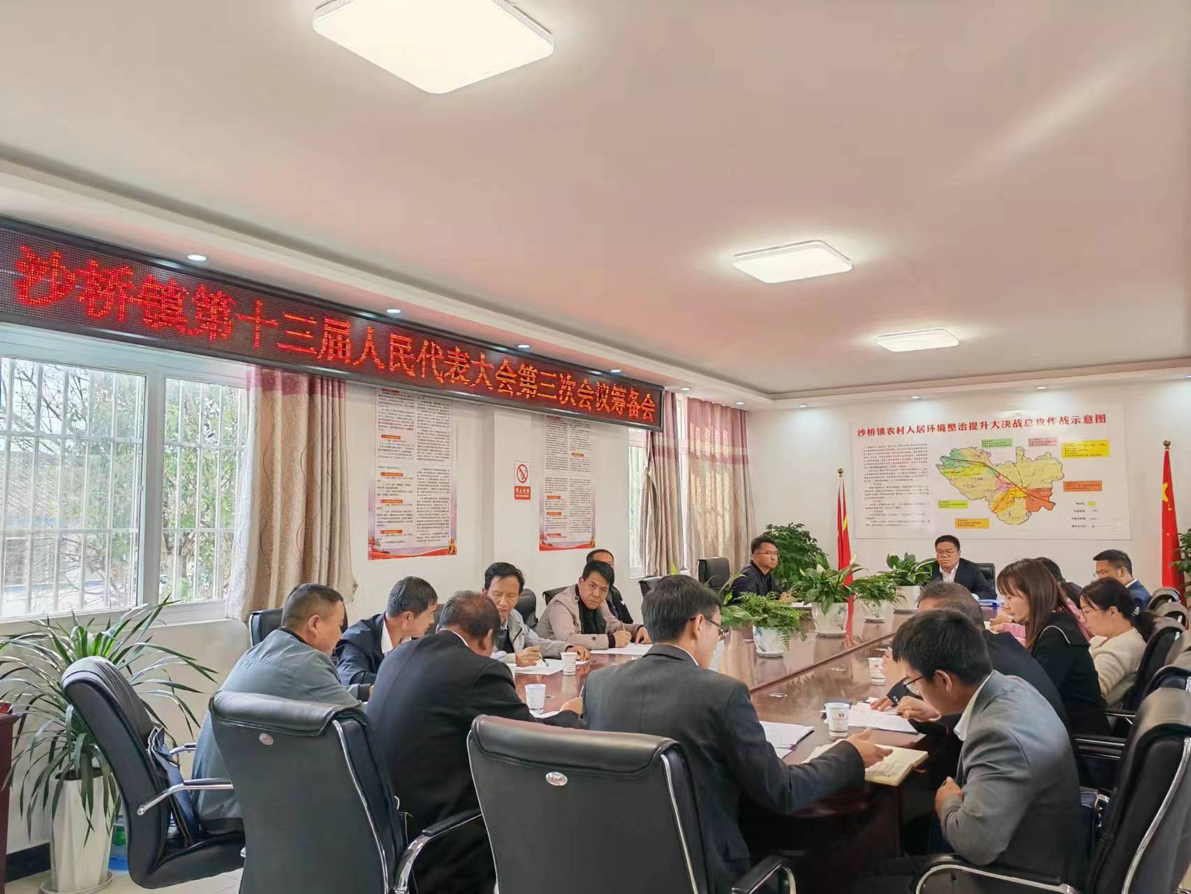 当天17:00,在镇政府大会议室召开沙桥镇第十三届人民代表大会第三次会议筹备会议,会上各代表组分别汇报代表报到情况,通报会议筹备情况。