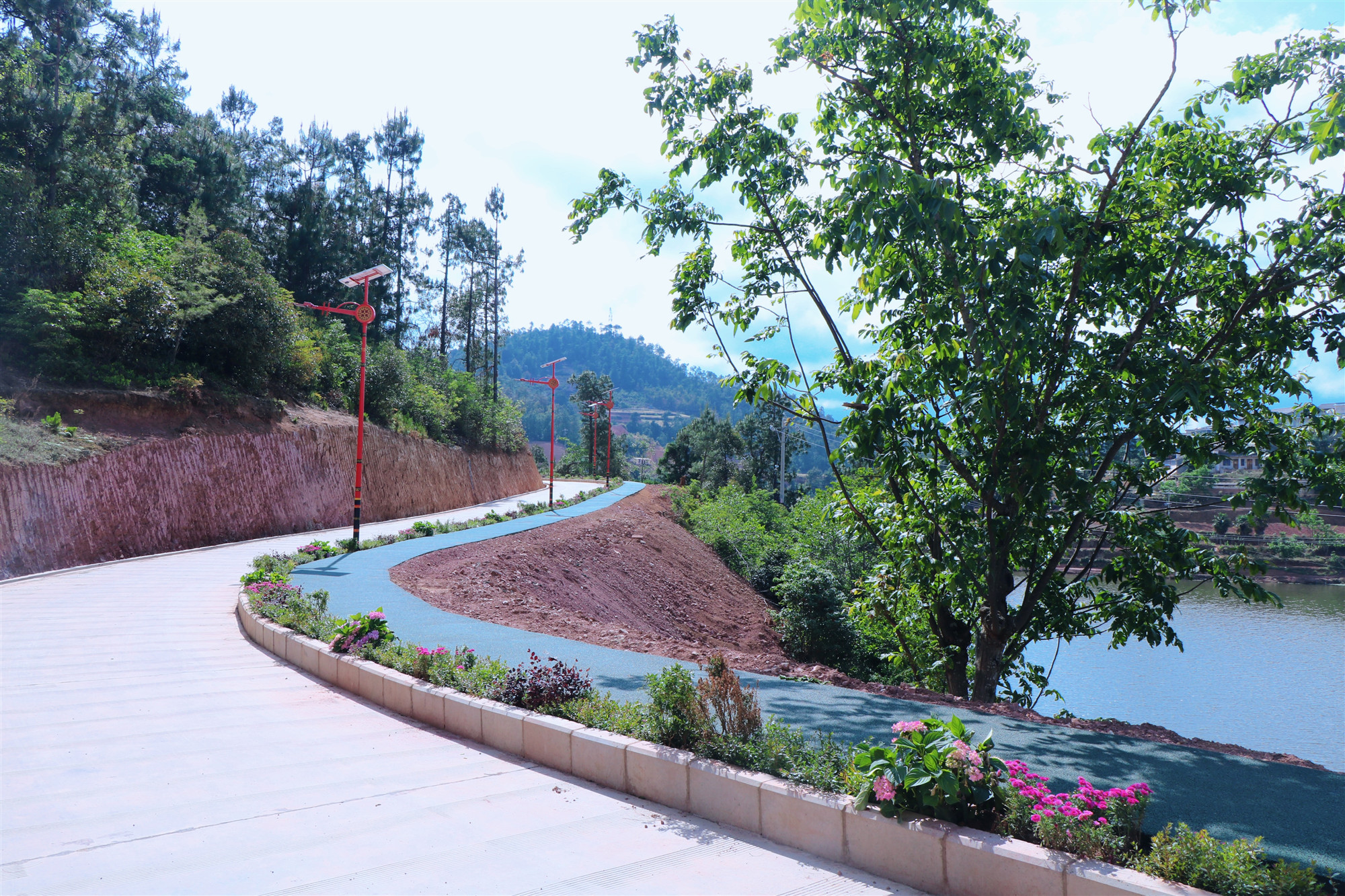 穿过打跳场,就来到了松茸湖,环湖步道环绕着清澈的湖水,沿途绿树成荫、鲜花绽放,成为了集镇的一道靓丽风景线。居民们沿着步道散步,欣赏着湖光山色,感受着大自然的美好。