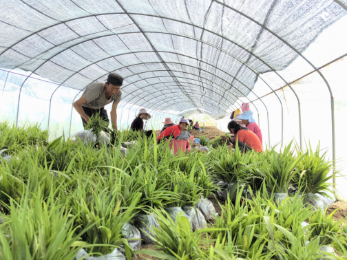 “一亩白芨苗,胜过十亩粮。”清晨的阿底沟村,药农杨国成蹲在田间,小心翼翼地拨开翠绿的叶片,即便被晨露沾湿衣袖,脸上的喜悦却掩不住。“这些白芨就像我的孩子,看着它们一天天长大,心里比喝了蜜还甜。”他轻抚着白芨苗,给我们算了一笔账:“1亩地能育苗20万株,按市场价每株0.3元计算,30亩产值可达180万元。”白芨,其根白色,连及而生,故曰白及。这味被誉为“止血圣药”的古老药材,如今在红土坡镇的林下焕发新生,成为乡村振兴的“绿色引擎”。微风拂过,白芨苗轻轻摇曳,仿佛在诉说着这片土地的生态传奇。