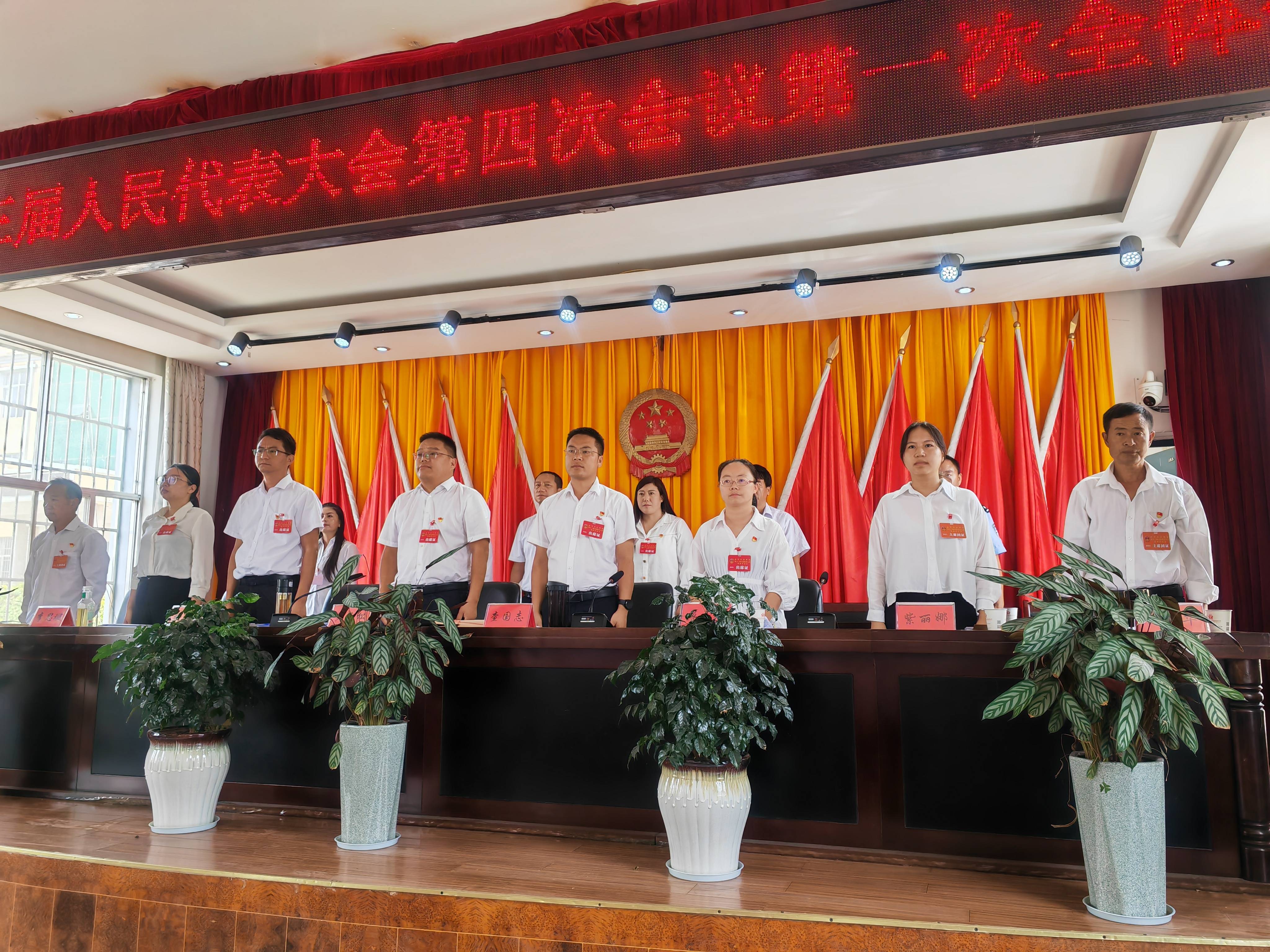8月18日,沙桥镇第十三届人民代表大会第四次会议在镇政府大会议室开幕。来自全镇各条战线上的人大代表肩负着全镇人民的重托和殷切期望,汇聚一堂,共谋沙桥发展大计,共绘沙桥发展宏伟蓝图。本次大会应到代表64名,因事因病请假10名,实到会代表54名,符合法定人数。上午11时,大会在雄壮的国歌声中拉开帷幕。