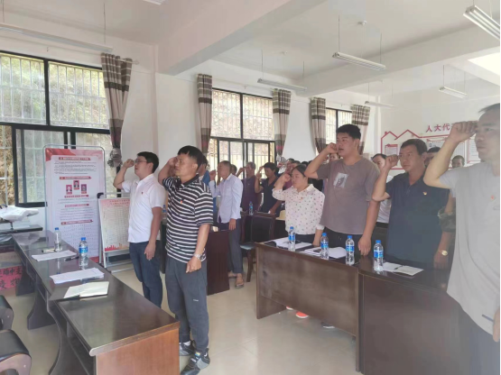 进行一次集体宣誓。活动在嘹亮的国歌声中宣告开始,全体党员庄重肃穆、齐声合唱,如当初革命先烈一样,不断传承发扬团结奋斗精神;会场内,在支部书记的带领下,重温入党誓词,宣誓掷地有声、铿锵有力,如当初入党时一样,怀抱诚挚热情、忠诚担当的理想信念,切实弘扬伟大建党精神。