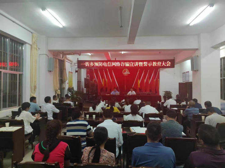 反诈宣讲“铺路子”,守好群众“钱袋子”,8月18日晚,在一街乡第十三届人民代表大会第四次会议间隙,一街乡组织开展预防电信网络诈骗暨警示教育大会,乡党政领导干部、乡人大代表、列席人员、站所职工共计80余人参加。