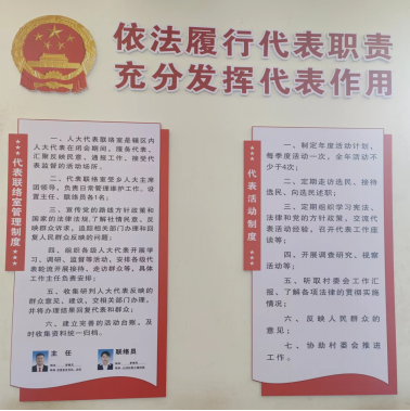 二、在管上下功夫,发挥阵地作用。统一规范建立“站室”管理制度、代表活动制度、代表工作通报制度、代表联系人民群众制度、人民群众意见建议收集反映制度、主席团成员联系代表制度、预算审查基层联系点工作制度等7项规章制度,做到“统一上墙、统一标准、统一落实”。选优配强工作站工作队伍,设立站长、副站长、联络员各1名,选优配齐联络室主任、副主任24名,加强“站室”管理,定期开展接待群众活动,面对面倾听群众呼声,解决群众急愁盼问题;定期组织代表学习政策理论、法律法规和人大业务等知识,提升履职能力,激发履职活力。强化考核,将联络室管理和使用作为村干部年度考核的重要依据,确保活动阵地能建好、管好、用好,确保“小阵地”发挥“大能量”。