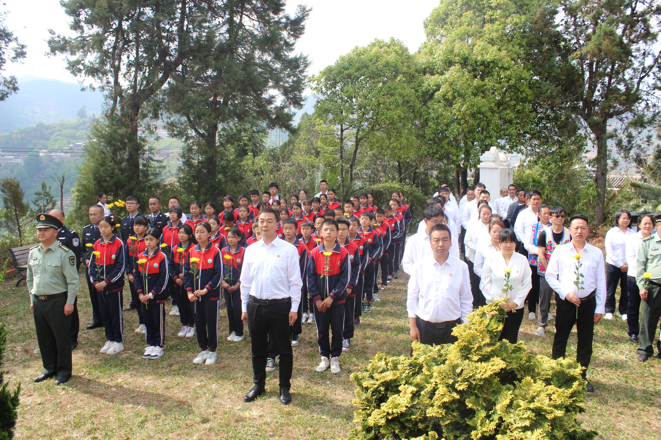 巍巍哀牢山下的烈士陵园中,革命烈士纪念碑高高耸立,庄严而神圣。祭奠活动在庄严雄壮的《国歌》声中正式开始,少先队员献唱《我们是共产主义接班人》,向烈士敬献花篮,全体人员向烈士行三鞠躬礼,全体参加祭奠活动的人员依次有序地向革命烈士敬献鲜花,并瞻仰烈士纪念碑、烈士墓,表达对革命先烈的崇高敬意和无限哀思。