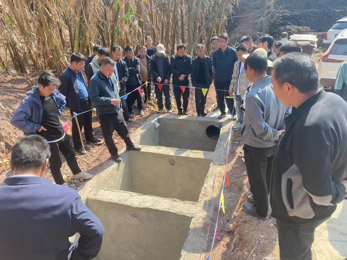 典型示范引路,强化以点带面。注重试点先行,以点带面推进治理。加强设施建设质量管理,建立管护机制,建成一个、管好一个、用好一个,不搞“一阵风”。打造示范村、示范组,以石桥河村8个村民小组、阿咪期苴村7个村民小组为示范点,以示范点为标准,通过召开现场观摩会、现场指导等方式,专班组技术人员讲解施工技术要点,示范村书记分享农村生活污水治理经验,通过交流培训学习,全面提升全镇农村生活污水治理水平。