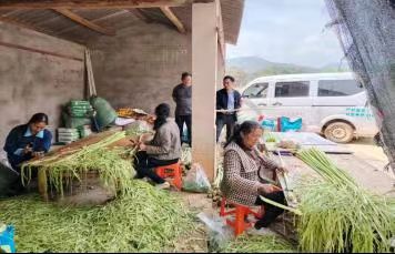 五顶山乡出产的贡菜色泽鲜绿、口感清脆,上市早、品质好、供应期长、备受收购商欢迎,种植户不用担心销路问题。一到贡菜上市季节,大理的收购商在五顶山乡设置了收购点,种植户只需将贡菜运至收购点,收购商会按质定价。经过打包、装箱后,这些干品贡菜将出现在各大商超的货架、火锅餐饮店的餐桌上。