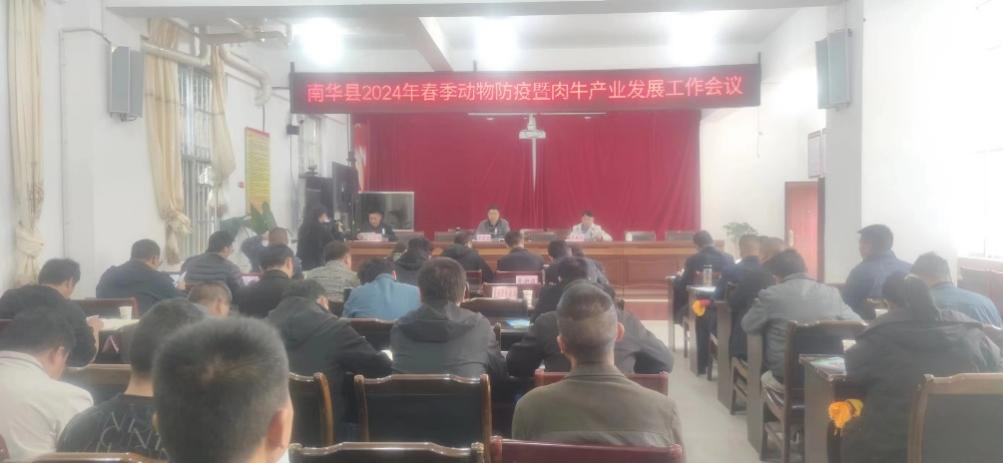 为保证春季动物防疫工作落到实处,2月25日,南华县2024年春季动物防疫暨肉牛产业发展工作会议在一街召开,县委副书记王连波,县人民政府副县长李春剑,县级有关部门领导、各乡镇党委书记、分管领导、农业农村服务中心负责人及县农业农村局有关人员参加会议,会议通报了全县2023年重大动物疫病防控、肉牛产业高质量发展工作考评结果。