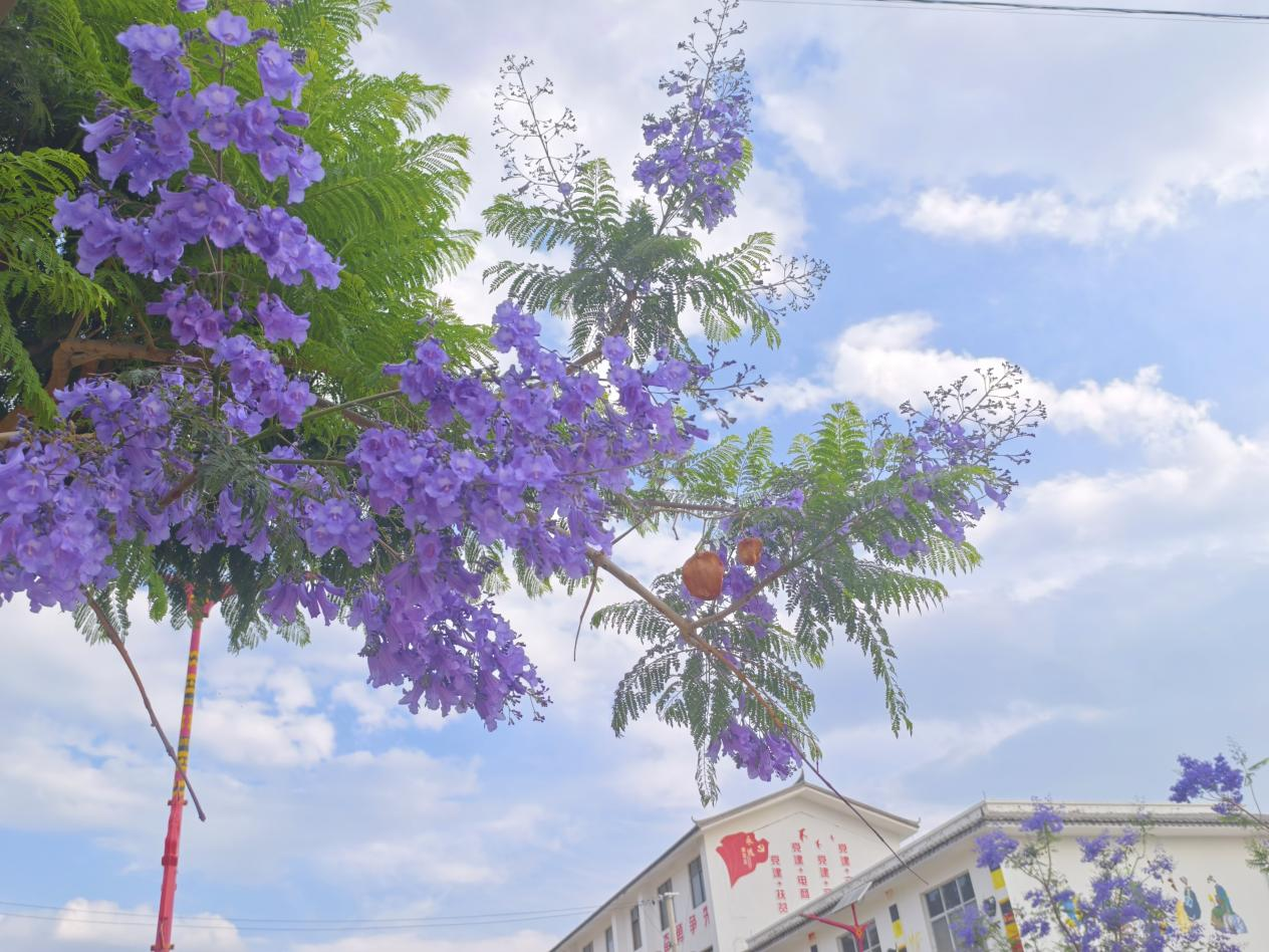 近日,罗武庄乡树密鲊村委会幸福新村蓝花楹已悄然进入了盛花期,走在幸福新村宽阔的道路上,就会和这些蓝紫色的浪漫撞个满怀,一树树紫蓝色的花朵清丽脱俗,微风拂过,一串串紫色“铃铛”随风摇曳,花瓣漫天飞舞,似乎在向人们诉说幸福新村的演变。