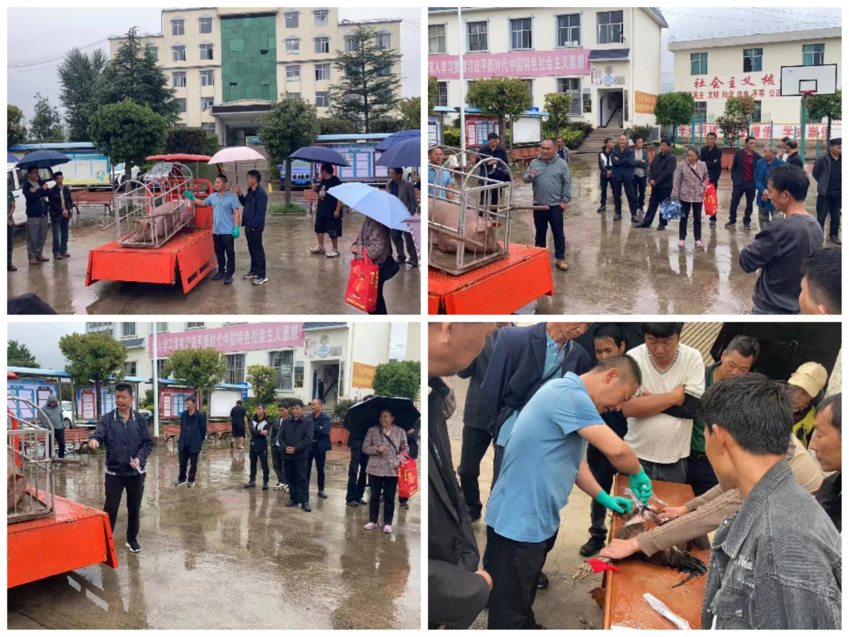 本次培训采取现场活体教学和理论知识讲解两个阶段进行。第一阶段的现场活体教学在沙桥镇人民政府院内开展,大家围成一圈,县农业农村服务中心技术人员向参训人员现场示范讲解了活猪体温测量、注射方法及注意事项;示范讲解活鸡采血方法,通过对鸡进行解剖讲解常见疾病的病理变化,在活体教学现场,技术讲解员与养殖户们一一交流,针对养殖中遇到的实际问题和培训时的疑惑进行专业解答,让养殖户们真正听得懂、学得到、养得好。