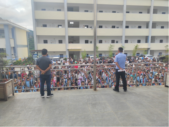 “你们的同龄人,十几岁出头,手机充值一次能刷掉爷爷3万元,年纪虽小动静惊人”。随着孩子异口同声的惊呼,一场生动演讲随之开始。主席台上,一街乡副乡长、派出所所长刘环归用乡内近案进行普法,以学生角度带入,生动讲述了网络涉黄涉暴传播、高额返利诱惑等网络陷阱,并就学生出行安全、防欺凌防违法等人身安全主题进行教育宣讲,将严肃案例进行拆解精讲、点明违法犯罪背后的严重后果,并进行防溺水、防诈骗等知识科普,让这场暑期结课最后一讲现场生动有趣、掌声不断。
