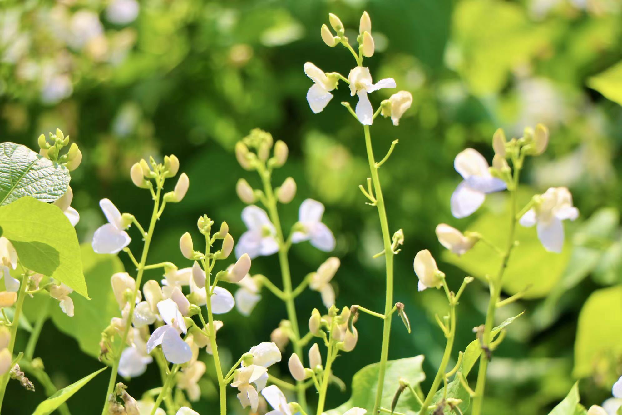 白芸豆之花,不似春花之绚烂夺目,也不及夏花之热烈奔放,它们以一种淡雅高洁之姿,静静绽放于绿叶之间。