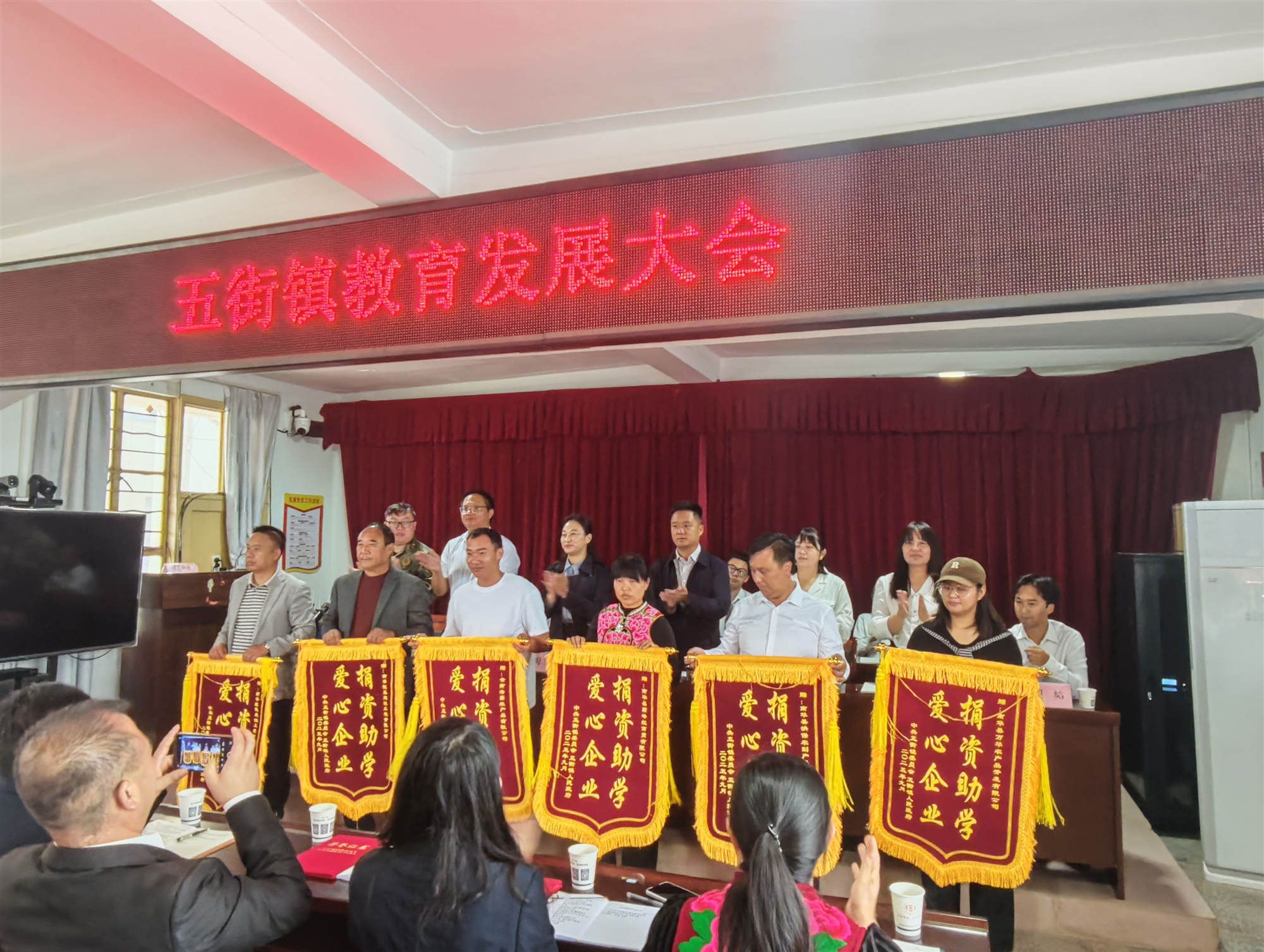 会议上,通报了中小学教育教学成绩,宣读了2025年教育工作先进个人及捐资助学爱心企业名单,并为受表扬个人颁奖,为企业授旗,为受资助学生家长发放资金,教师代表、教育工作优秀个人进行了发言。