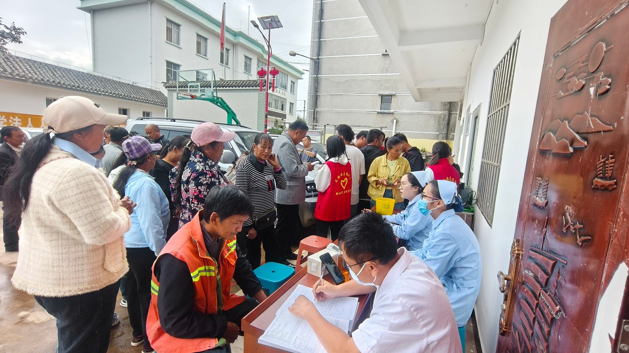 活动现场,来自镇级机关、上管单位、13个村委会的干部职工及热心群众有序配合志愿者和医护人员,依次完成信息登记、血压测量、血型检测等流程,最后,符合条件的人员进入到献血环节。