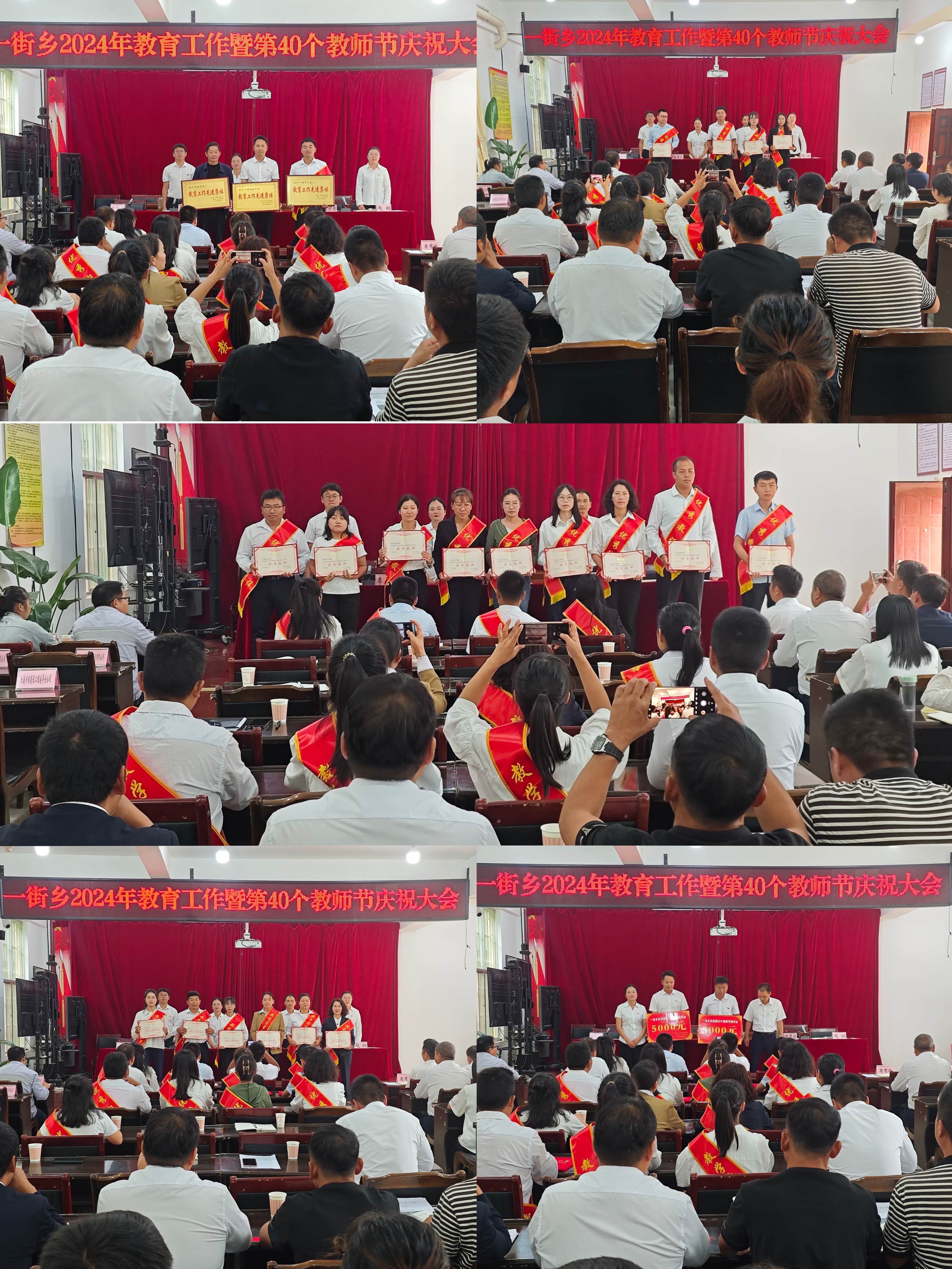 会上宣读了《中共一街乡委员会一街乡人民政府关于表扬2023-2024学年教育先进集体和先进个人的决定》,乡党委、政府为他们颁发奖牌和荣誉证书,并为一街初级中学、一街中心学校发放教师节慰问金。