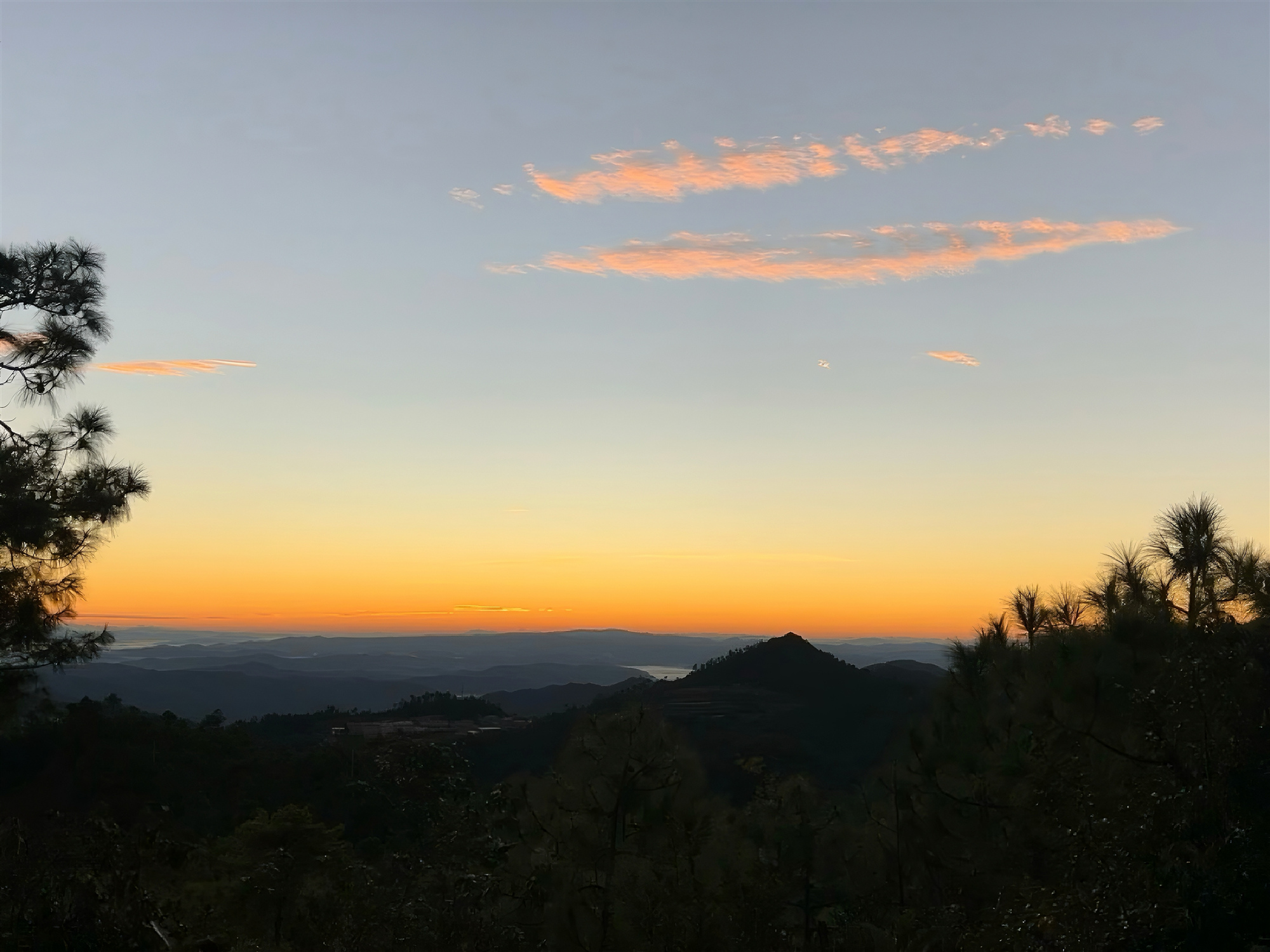 站在马缨花谷的观景台上,眼前是一片开阔的山谷。随着天边的云彩渐渐被染上金色,一轮红日缓缓升起,将大地从沉睡中唤醒。那一刻,光影如诗如画,仿佛大自然的画师在这里挥洒着无尽的创意。