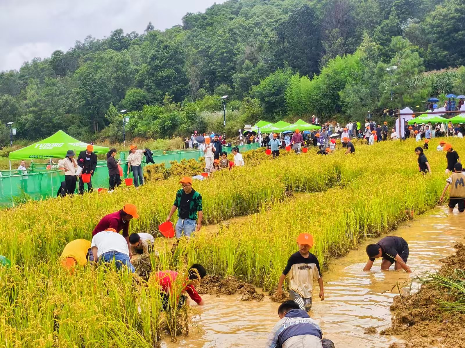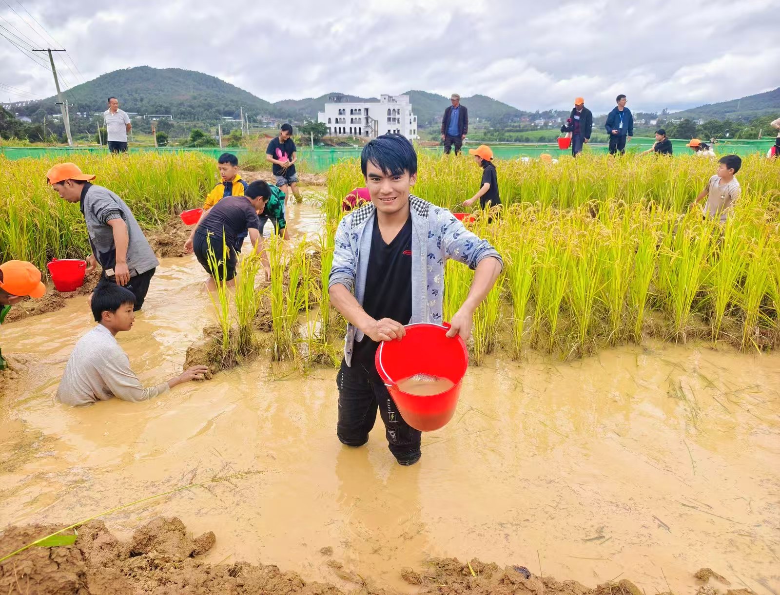 2025年10月1日,雨露乡到处洋溢着丰收的喜悦和捕捉的快乐,“风华雨露·渔您有约”稻田摸鱼体验活动热闹启幕。大朋友小朋友们带着雀跃,踏入这片藏着丰收秘密的天地,来到这个饱含着诗意韵味的村落,一场与自然、与劳作的亲密邂逅,正式开启。