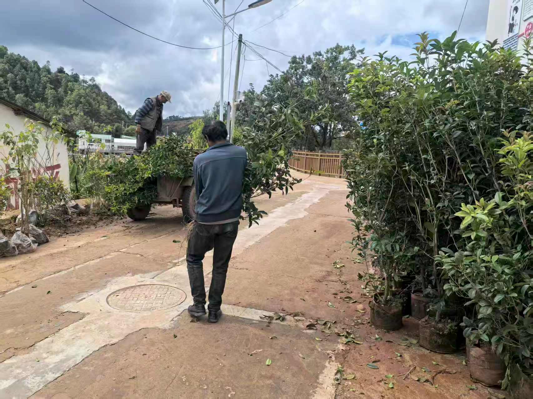 “以前路边光秃秃的,现在栽上了 桂花、缅桂,以后花开了又香又好看。”参与植树的村民郭大姐一边挖树塘,一边笑着说道。