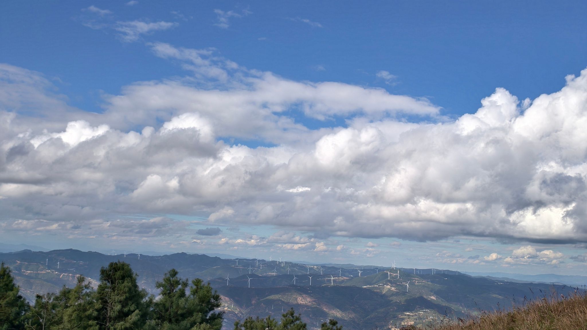 登上高处,一街乡的“风车阵”绝对是视觉盛宴!数十座白色风车矗立在连绵山巅,巨大的叶片悠悠转动,将山风转化为清洁能源,也在蓝天云海的映衬下,勾勒出极具现代感的诗意画面。