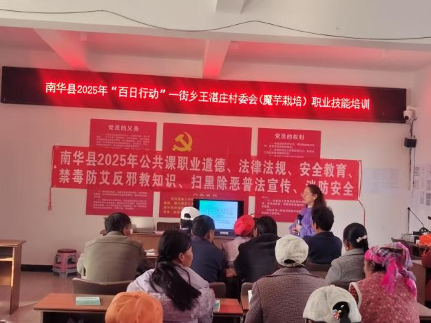 王湛庄、咱租村委会分别开展魔芋栽培技术培训及开展老年人照料知识培训,课程统一由昆明市盘龙区星易职业技能培训学校老师授课。课程内容主要讲授了魔芋概述及应用价值、魔芋分类及形态特征、魔芋生物学特性、魔芋栽培农药及化肥使用、魔芋栽培管理及病虫害防治、魔芋采收及初加工、魔芋繁殖方法;养老护理员概述、老年人居住环境与清洁消毒、老年人身体护理及日常生活护理、老年人常见健康问题及护理以及常见疾病护理、老年人安全保护及现场急救、老年人用药安全护理等知识。