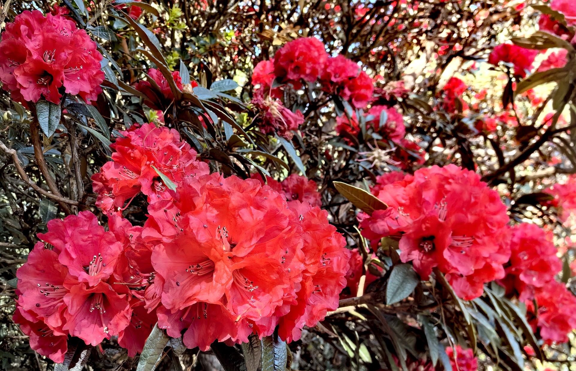 马缨花,又名马缨杜鹃、高山大树杜鹃,多生长于高海拔地区。其花瓣如同细腻的绸缎,层层叠加,形成一朵朵精美的花朵,宛如火焰般浓烈。它们散落在山坡丛林中,朝气蓬勃,仿佛在传递着新的希望,释放着生命的芳华,惊艳了整个春天。