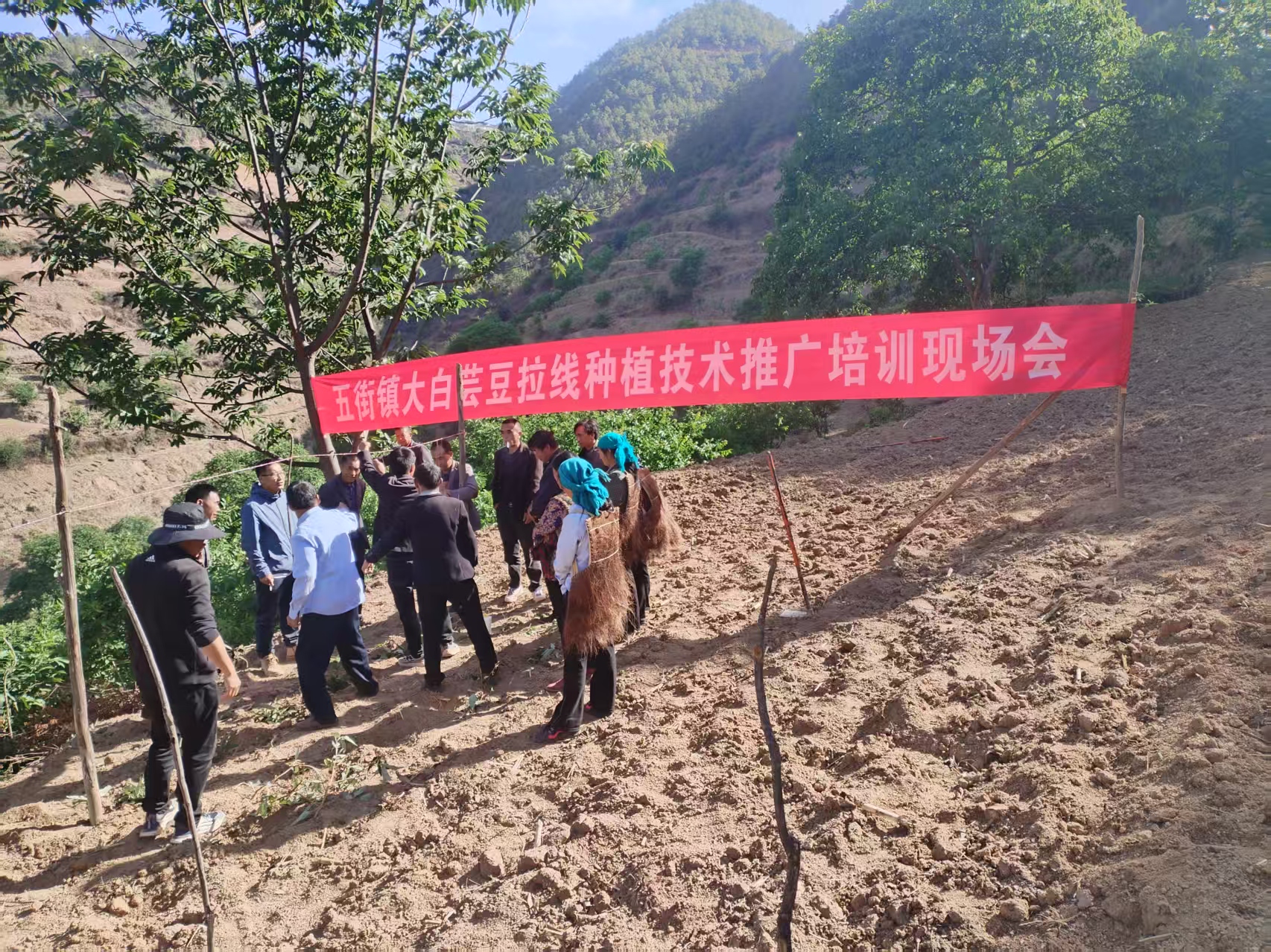 为提高白芸豆的产量、品质,五街镇农业农村发展服务中心一直以来致力于研究改进白芸豆种植管理方式。近日,五街镇农业农村发展服务中心相关技术人员召集各村白芸豆种植户到五街村委会召开五街镇白芸豆拉线种植技术推广培训现场会,现场指导白芸豆拉线种植技术要点。