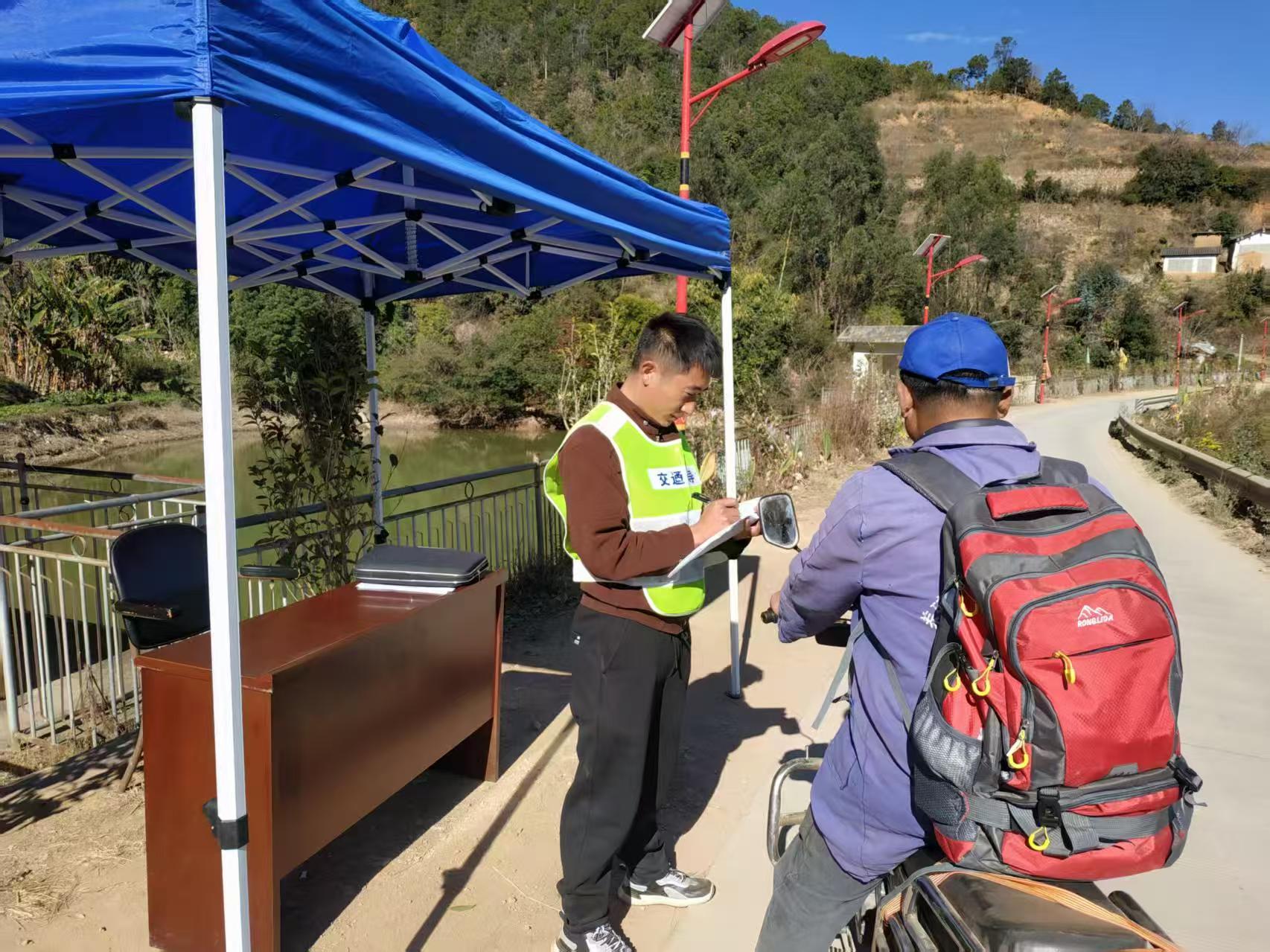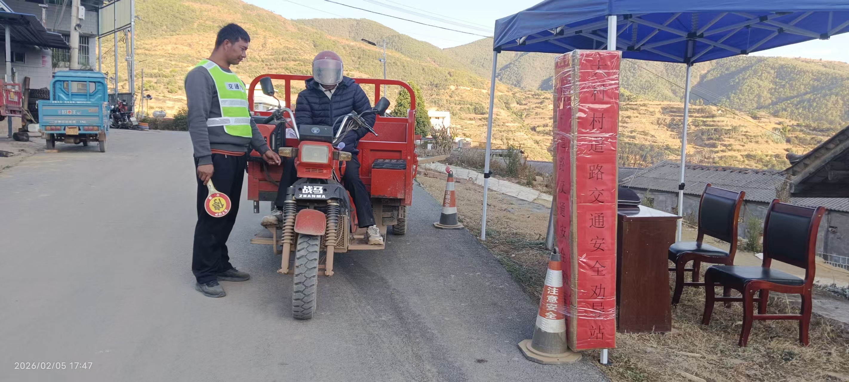“同志,农用车载人存在极大安全隐患,咱们可得为自己和家人负责啊!”“前方弯道多,请减速慢行,注意会车!”在乡主干道劝导点,执法人员正耐心劝导违规驾驶人。在洒披武盘山路段,志愿者们顶着寒风挥舞着引导旗,提醒过往车辆。该路段是返乡车流的必经之路,急弯陡坡多、视线受阻,曾是交通事故高发点。为保障春运安全,雨露乡创新“定点设卡+流动巡查+智慧监控”三位一体执法模式,在交通要道、村路口设立7个常态化劝导站,针对农用车非法载人、摩托车不戴头盔、酒驾醉驾、超员超载等突出违法行为,开展 “百日整治”专项行动。