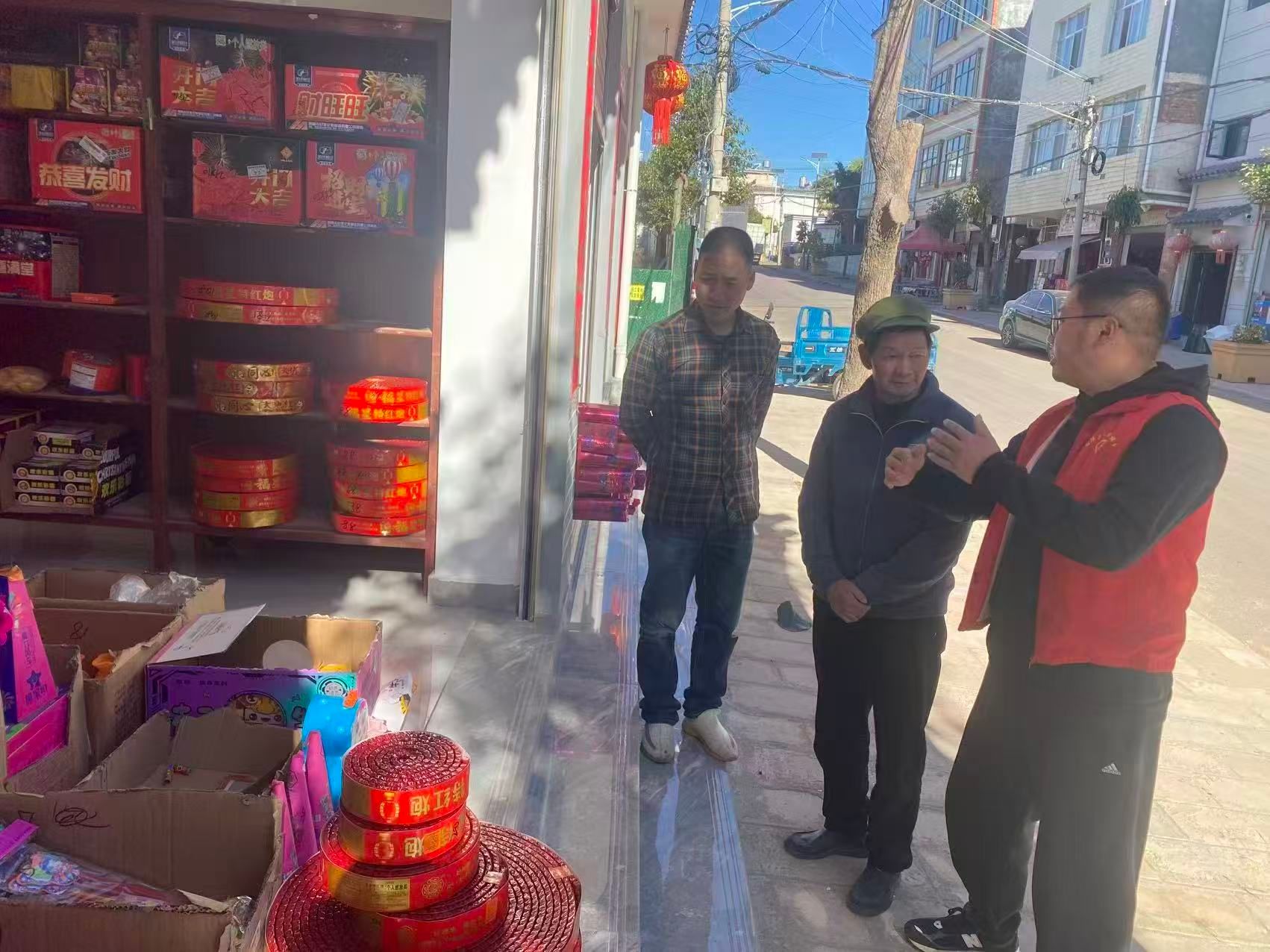 针对春节易发多发无证驾驶、超员、违法载人、酒后驾驶等道路交通违法行为,各村结合农村群众出行特点,通过在赶集路上设置“两站两员”,因地制宜开展交通安全劝导,全力防范道路交通事故发生。