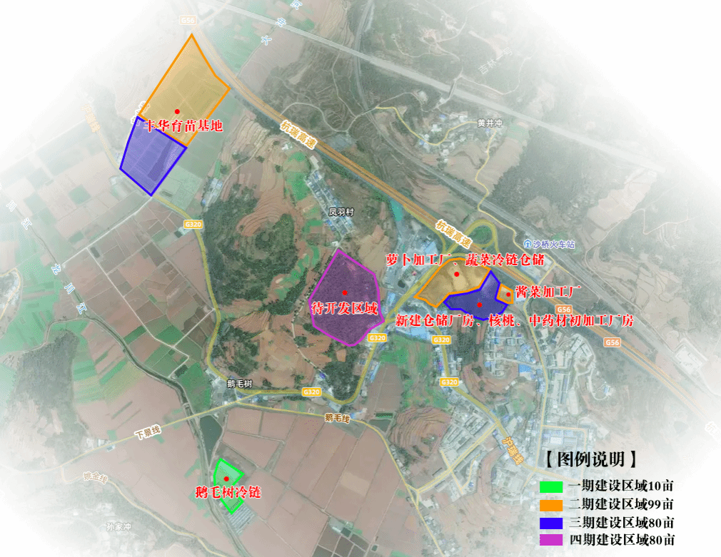 沙桥镇高原特色农业产业园立足区位交通优势和资源禀赋,坚持高起点规划、高标准建设,聚焦良种育苗、标准化种植、加工增值、冷链物流、品牌营销、联农带农六大核心功能,着力构建“育苗—种植—加工—冷链—销售”全产业链闭环体系,打造集生产、加工、流通、服务于一体的现代农业产业高地。园区总规划占地面积269亩,目前已开发建设109亩。