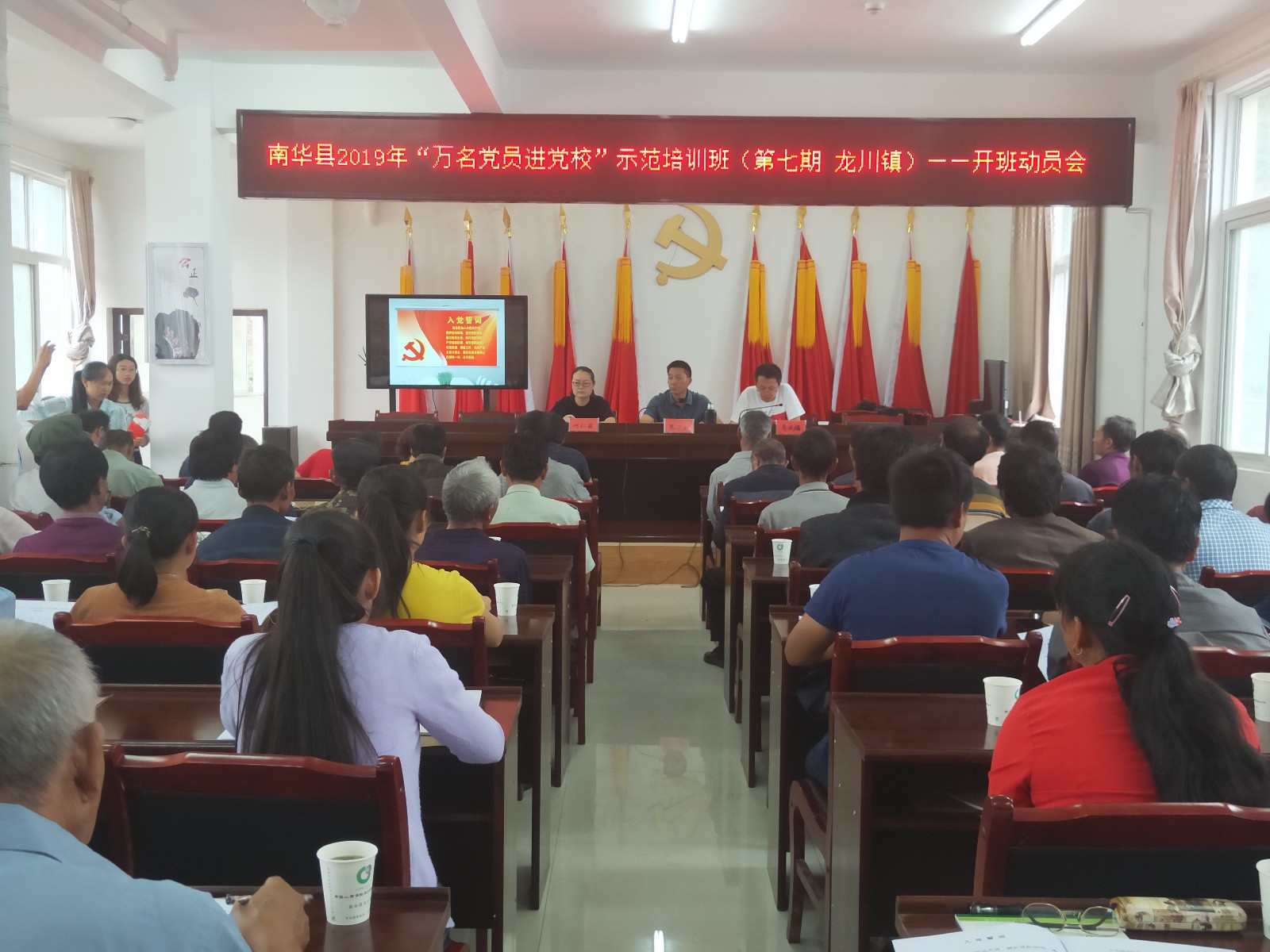 为贯彻落实好省州“基层党建创新提质年”和“万名党员进党校”工作要求,深入推进“干在实处 走在前列”大比拼活动,6月25日,南华县2019年“万名党员进党校”示范培训班(第七期)在龙川镇二街社区开班。二街片区4个村(社区)部分党员及龙川镇5个贫困村“两委”成员共135人参加培训班。