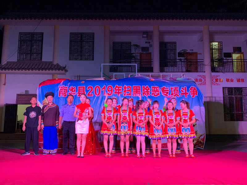 近日,由县委宣传部主办,南华咪依噜演艺公司承办的扫黑除恶专项斗争文艺汇演走进马街,为全镇人民带来了一顿“扫黑除恶大餐”。汇演在开场舞《盛世花开》中拉开序幕,舞蹈《彝寨情歌》、《多嘎多耶》、《羊皮拍出闪闪歌》;独唱《美丽的心情》、《幸福中国一起走》;小品《夜捕蟑螂》;快板《扫黑除恶得民心》等节目轮番上演,主题鲜明,形式多样,深受群众喜爱,赢得了阵阵掌声。本次汇演是为了加强扫黑除恶专项斗争宣传的一项重要举措。不仅普及了扫黑除恶相关知识,更让扫黑除恶专项斗争进一步深入人心,引导广大群众积极参与到扫黑除恶专项斗争中来。