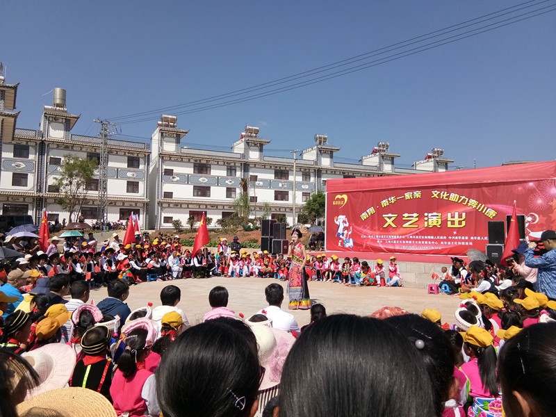 5月30日上午,南华县雨露白族乡杨方坝广场,人头攒动,欢笑声、歌舞声不断,由上海市嘉定区南翔镇和南华县共同主办的“南翔·南华一家亲,文化助力奔小康”文艺演出活动走进雨露乡。