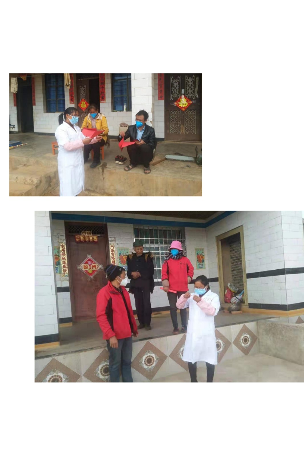 “您家有外地回来的亲戚,先别出门,一定要注意观察体温”,“现在疫情严重,过年这段时间就不要走亲戚了”。在五街镇芹菜塘村委会总可以看到这样的一个身影:她走村串户,用最简单直接的语言宣传疫情的严重性,用老百姓最能接受的方式传递着党组织的关怀和温暖。她就是鲁丽琼,县人大代表、村妇联主席,同时还是一名村医。一件医生大褂、一个一次性口罩、一支体温计,就是鲁丽琼这几天检测辖区内居民群众体温的全部装备,她陪同村干部一起入户宣传疫情防护知识,并对回乡人员进行检查,了解是否发热,有无咳嗽、胸闷等不适症状,村民们都为鲁医生点赞、致敬。