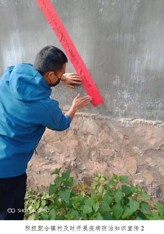 三是积极配合镇村及时开展疫病防治知识宣传。通过微信群、发放倡议书等形式,开展疫病防治知识宣传,做好群众宣传教育工作,动员群众改善生活习惯,引导群众不去人群聚集的地方、不去已经有疫情的城市和地区,尽量减少与疫情城市回来人员的接触,做好个人防护,如果到公共场所务必要戴口罩,不参加各类聚集性的民俗活动,减少探亲访友,不参加聚餐,不搞亲朋好友之间轮流宴请。同时做好对谣言的打击力度,教育群众不信谣不传谣,安抚群众恐慌情绪,维护社会稳定。2月1日,出动车辆10余次,人员200余人次深入各村开展政策和疫情防护知识宣传,督促各村开展疫情防控工作,通过镇村组等微信群发布通知、公告200余条。在公路沿线、村组、集市等悬挂布标15条。自1月22日以来,累计出动车辆50余次,人员2193人投入到疫情防控工作中,累计发布通知、公告600余条,在公路沿线、村组、集市等粘贴通知、公告、悬挂标语200余条。